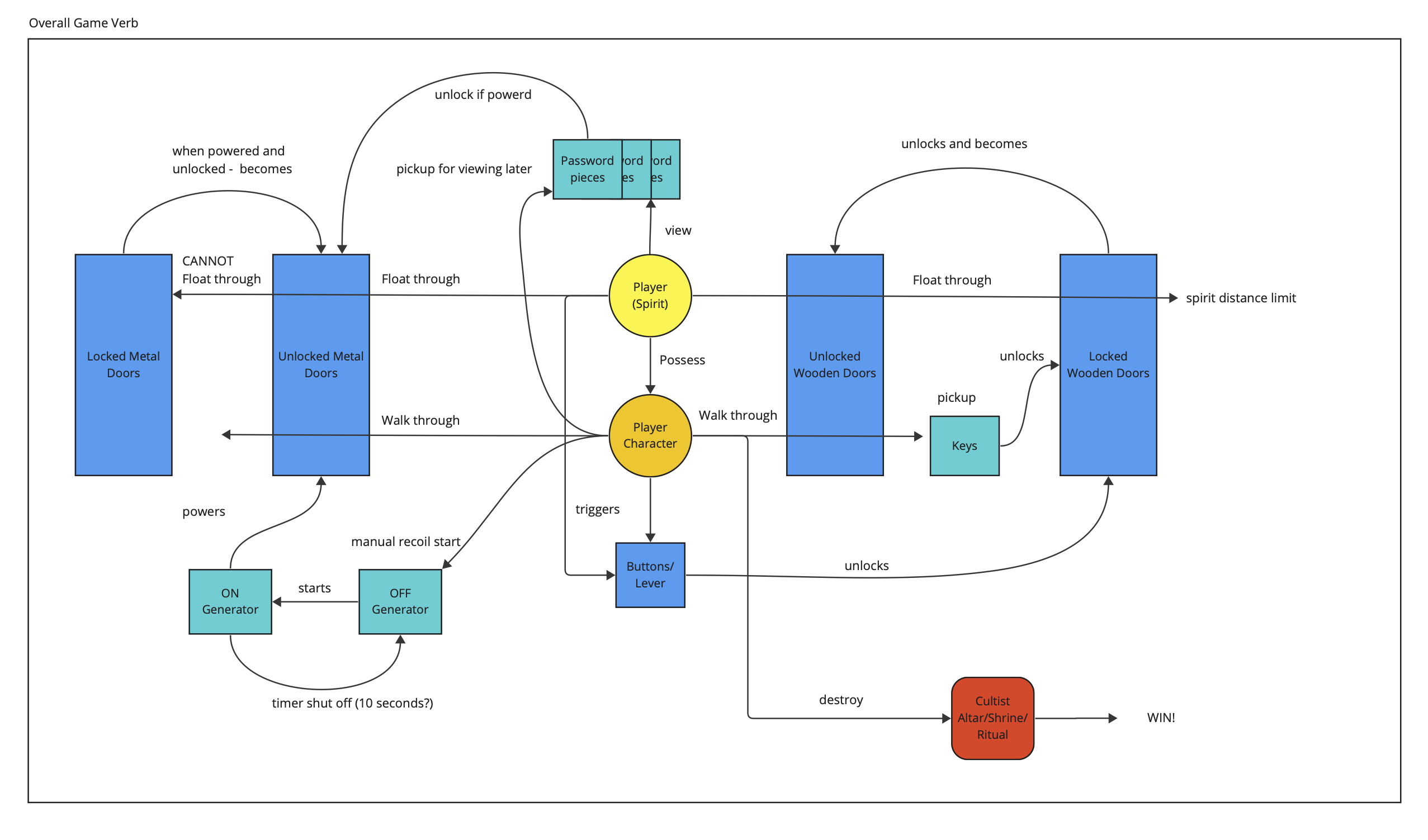 A flow chart of the player's verb in the game were created on Miro.